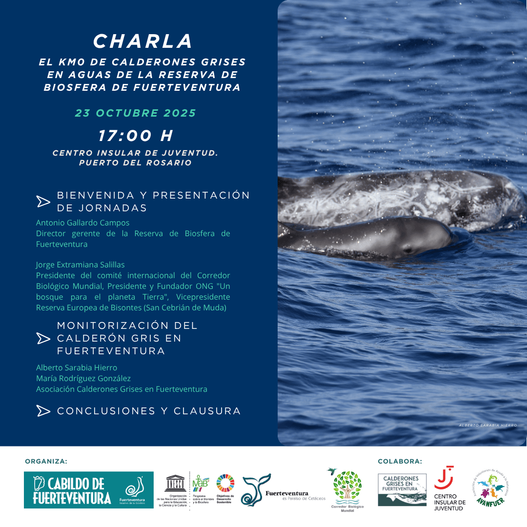 El objetivo de las charlas y reuniones fue realizar un seguimiento de los avances en la propuesta y del trabajo realizado durante el año. Como fruto de este trabajo la asociación Calderones Grises en Fuerteventura se adhiere como miembro del Corredor Biológico Mundial. Puedes acceder a la web del Corredor Biológico Mundial y el artículo de prensa aquí.